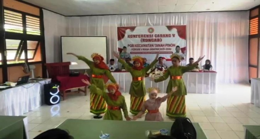 KOTA BARU – Suasana Konferensi Cabang (Koncab) Persatuan Guru Republik Indonesia (PGRI) Kecamatan Tanah Pinoh pada Kamis, 18 September 2025, menjadi lebih hidup dan semarak berkat penampilan memukau dari para siswa SMPN 2 Tanah Pinoh. Dengan gerak gemulai yang selaras, lima siswi berbakat sukses menampilkan Tari Zapin Melayu sebagai pembuka acara, memukau para hadirin yang terdiri dari para pendidik dan pejabat penting di lingkungan Kabupaten Melawi.